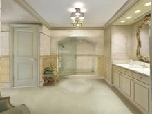إذا كنت لا تحب الديكور ، أو يتطلب أسلوب وتصميم الحمام استخدام بلاط ناعم للغاية من نفس اللون ، فإن المصممين يوصون بجعل الأرضية أغمق (أقرب إلى ظلال الشوكولاتة) ، والجدران – بيج فاتح. هذه النهاية ، على الرغم من تصميمها البسيط ، جميلة وأنيقة..