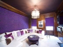 الاستخدام الأكثر قبولًا للألوان الأرجواني والأزرق والأسود والأخضر والبورجوندي وغيرها من أنظمة الألوان العميقة في القاعة ، حيث عادة ما تكون هذه هي أكبر غرفة في الشقة ، وهناك يمكنك إنشاء التصميم الداخلي الأكثر تناسقًا..