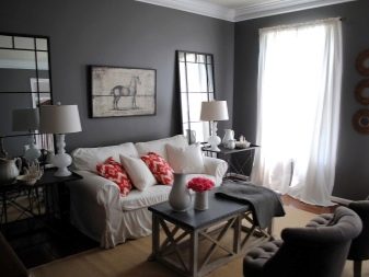 يمكن دمج الخلفيات الداكنة مع الملحقات المتناقضة ، ويمكن أن تكون مطلية بالفضة أو بالذهب ، وتتناسب هذه الخيارات بشكل أفضل مع النمط الكلاسيكي أو الطراز الحديث. بالإضافة إلى ذلك ، يمكنك تخفيف الأجزاء الداخلية الداكنة جدًا من خلال الاختيار الصحيح للأثاث. تعمل الألوان المتناقضة الفاتحة على “تفريغ” الغرفة وإضافة الضوء إليها.