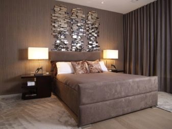 عند لصق غرفة نوم ، من الأفضل تجنب الألوان القاتمة للغاية في زخرفة الجدار المقابل للسرير. هذا الخيار “يضغط” على الشخص ، سيصبح النوم مضطربًا وصعبًا. من الأفضل بكثير وضع اللون المحدد على الحائط على رأس السرير ، ثم يصبح الجزء الداخلي متناغمًا ولن يطغى الحلم.