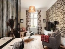 يعتقد الكثير من الناس أن ورق الحائط الداكن غير قابل للتطبيق في “خروتشوف” نظرًا لصغر حجم الغرف في شقق من هذا النوع ، ولكن هذا ليس هو الحال. ستساعد الظلال المختارة بشكل صحيح في إنشاء تصميم داخلي رائع حتى مع الأبعاد الصغيرة ، ما عليك سوى إضافة أكبر قدر ممكن من لهجات الضوء والضوء.