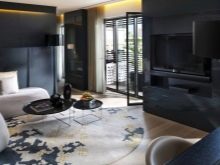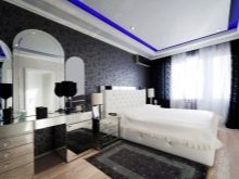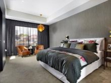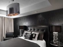 لذلك ، على سبيل المثال ، تحظى بشعبية كبيرة خيارات مدمجة من عدة ألوان أو مواد. لا يمكن لمجموعات الأسود والأرجواني والأسود والوردي والأسود والأصفر إنشاء حلول داخلية مشرقة ومثيرة للاهتمام فحسب ، بل تؤكد أيضًا على تفرد مالك الغرفة. لا يمكنك الجمع بين الخيارات أحادية اللون فحسب ، بل تبدو الغرف جيدة حيث يتم دمج مادة أحادية اللون مع مادة ذات نمط.