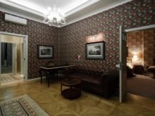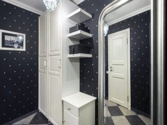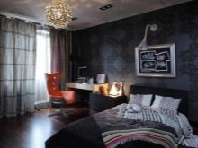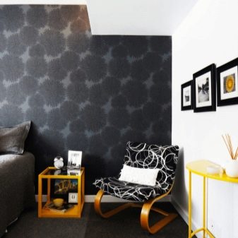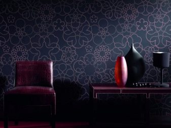العيب الرئيسي ، بالطبع ، هو أنه مع الاختيار الخاطئ للظل أو النمط أو غرفة صغيرة جدًا ، يمكنك ذلك مزيد من تقليل المساحة المتاحة, احصل على تصميم داخلي قاتم وغير جذاب وغير مريح لن ترغب في العودة إليه مرارًا وتكرارًا. يمكن اعتبار عيب آخر هو حقيقة أن الغبار الذي يتراكم عليها مرئي بوضوح شديد على ورق الحائط الداكن ، لذلك يجب مسح هذه الجدران بانتظام ، الأمر الذي يتطلب مادة عالية الجودة بما فيه الكفاية لا تخاف من الماء.
