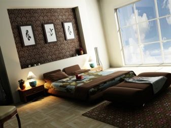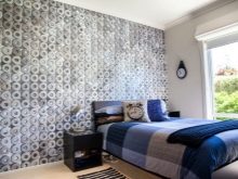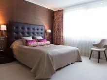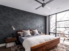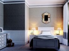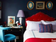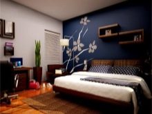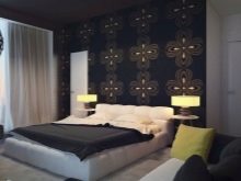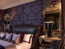 عند لصق غرفة نوم ، من الأفضل تجنب الألوان القاتمة للغاية في زخرفة الجدار المقابل للسرير. هذا الخيار “يضغط” على الشخص ، سيصبح النوم مضطربًا وصعبًا. من الأفضل بكثير وضع اللون المحدد على الحائط على رأس السرير ، ثم يصبح الجزء الداخلي متناغمًا ولن يطغى الحلم.