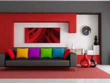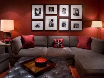 تعد الخيارات الحمراء والبرغندية جيدة للاستخدام في غرف المعيشة الكبيرة حيث يوجد العديد من الضيوف ، بالإضافة إلى عدد كافٍ من الملحقات التي لا تكمل الغرفة فحسب ، بل تقلل أيضًا من درجة عدوانية اللون المختار.