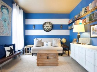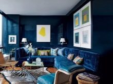 تعتبر الجدران الزرقاء غير اللامعة خيارًا جيدًا لغرفة النوم, مثل هذا الاختيار سيعطي جوًا من السحر والراحة في الغرفة. بالإضافة إلى ذلك ، يعد اللون الأزرق أحد أكثر الألوان شيوعًا في غرف المعيشة. من خلال اللعب بظلال مختلفة ، يمكنك الحصول على تصميم داخلي فريد لا يُنسى.