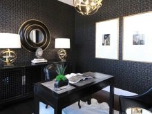 يمكن دمج الخلفيات الداكنة مع الملحقات المتناقضة ، ويمكن أن تكون مطلية بالفضة أو بالذهب ، وتتناسب هذه الخيارات بشكل أفضل مع النمط الكلاسيكي أو الطراز الحديث. بالإضافة إلى ذلك ، يمكنك تخفيف الأجزاء الداخلية الداكنة جدًا من خلال الاختيار الصحيح للأثاث. تعمل الألوان المتناقضة الفاتحة على “تفريغ” الغرفة وإضافة الضوء إليها.