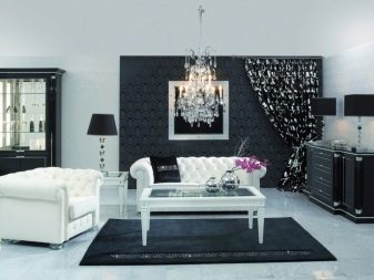 يجب بالتأكيد دمج اللون الأسود. تبدو خيارات الغرف على طراز فن الآرت نوفو ، حيث يتم الجمع بين اللون الأسود والذهبي ، جيدة. يمكن أن تضيف نغمات الأسود والذهبي الفخامة والأناقة والجو الخاص إلى الغرفة. تتناسب تركيبات الأسود والوردي أو الأسود الليلكي تمامًا مع الجزء الداخلي لغرفة النوم الناعمة ، لكن الطوب الأسود سوف يكمل بشكل متناغم غرفة المعيشة أو غرفة الطعام بأسلوب الدور العلوي.