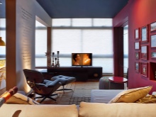 الاستخدام الأكثر قبولًا للألوان الأرجواني والأزرق والأسود والأخضر والبورجوندي وغيرها من أنظمة الألوان العميقة في القاعة ، حيث عادة ما تكون هذه هي أكبر غرفة في الشقة ، وهناك يمكنك إنشاء التصميم الداخلي الأكثر تناسقًا..