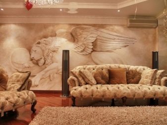 تخلق الخلفيات في منطقة الاستجمام وجودًا حقيقيًا للارتياح مع ملائكة ملامسة. لا توجد وسيلة للشك في أصالة المجموعة النحتية. يتم الجمع بين لون الرمال الرقيق للصورة بشكل متناغم في الداخل مع سجادة ووسائد صفراء وظل هادئ من الأثاث. طاولة بالكاد يمكن ملاحظتها ستجد مكانها على الأرض ، والأرائك مدفوعة إلى الجانبين بحيث يكون نقش القاعدة بأكمله مرئيًا قدر الإمكان.