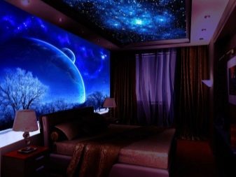 في إنشاء مثل هذه الخلفيات ، يتم استخدام مسحوق الفلورسنت ، والذي ، بالاقتران مع إضاءة النيون ، يخلق تأثيرًا متوهجًا. يتم لعب مؤامرات مختلفة: حريق ، ضوء في نافذة ، يراعات ، وما إلى ذلك. تتميز خلفية السقف بصور السماء ليلا مع وجود النجوم المتوهجة..