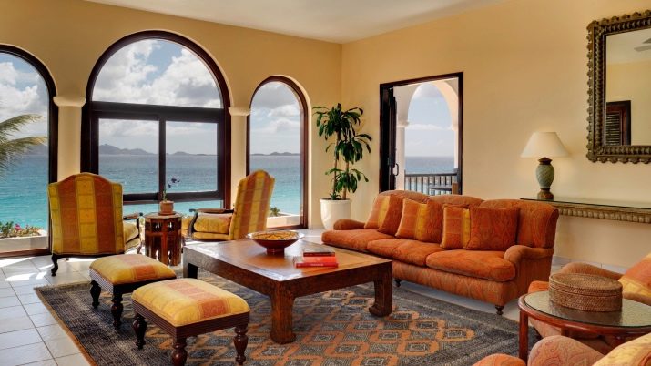 الجزء الداخلي التالي مصنوع على الطراز العرقي الأفريقي. ديكوره المميز مع التماثيل الصغيرة والأوعية الوطنية بالكاد يمكن تمييزه تحت هجوم وحيد القرن الحقيقي. يخترق الحيوان الجدار حرفيًا في جو الغرفة الهادئ والهادئ. قليل من الناس سيكونون سعداء باحتمالية الجلوس على الأريكة مباشرة تحت أقدام الوحش الجاري..