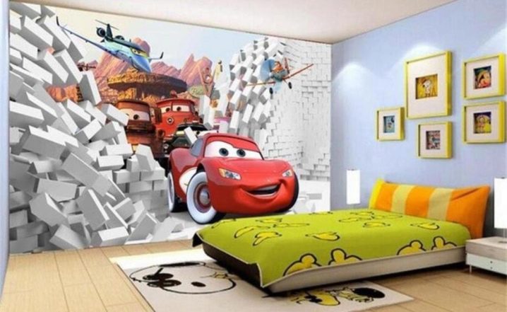 تبدو غرفة لصبي مع خلفية ثلاثية الأبعاد من الرسوم المتحركة المفضلة لديك مثيرة للاهتمام. اقتحم عمود من السيارات المشتل ، وحول الجدار إلى كومة من الطوب. على الرغم من حقيقة أن الضيوف غير المدعوين على وشك الوصول إلى السرير ، إلا أن ابتساماتهم جذابة ، والطفل يعلم أن السيارات توقفت لتوها لتلقي التحية.