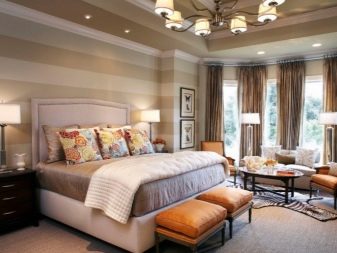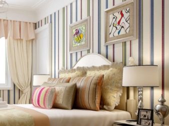 يبدو النمط المخطط جيدًا على الطائرات أحادية اللون ، ولكن من الأفضل تمييزه بمساعدة أنماط مختلفة – أنماط متقلب أو أشكال هندسية أو زخرفة أو ألوان أصلية. عند اختيار نمط الديكور الداخلي ، يوصي الخبراء تقييم النتيجة المخطط لها بشكل صحيح, لأن تقاطع الأنماط والخطوط المختلفة في نفس الغرفة يمكن أن يبدو أخرقًا وقبيحًا.