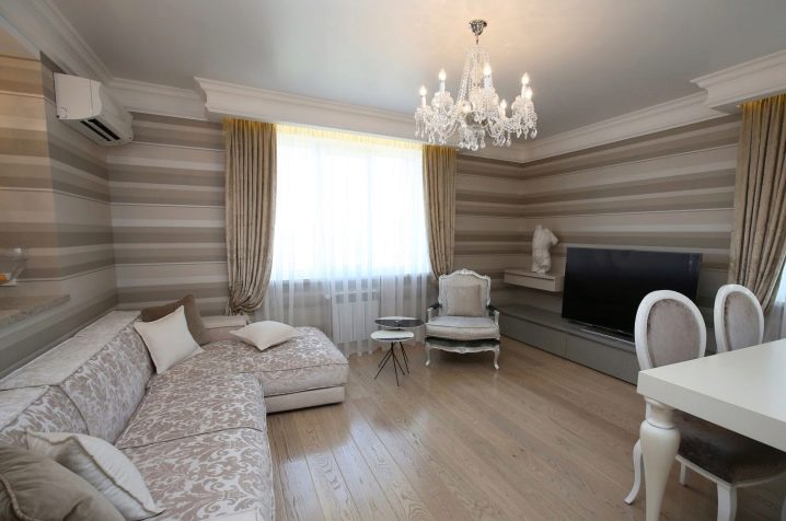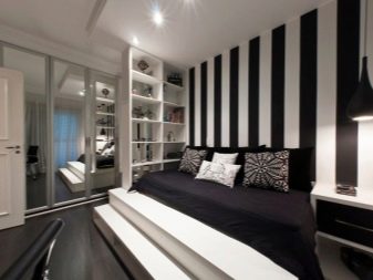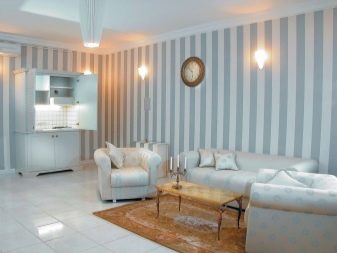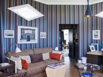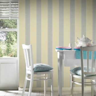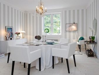 - مع العرض الصغير للجدران والسقوف العالية ، يمكن أن يتسبب استخدام ورق الحائط المخطط في الشعور بعدم الراحة. لذلك ، من الأفضل اختيار هذا الخيار فقط في المساحات الكلية ؛