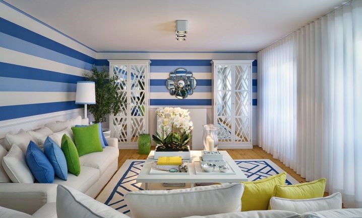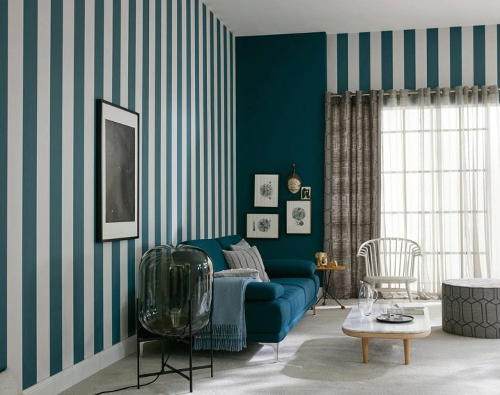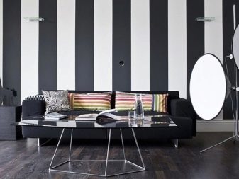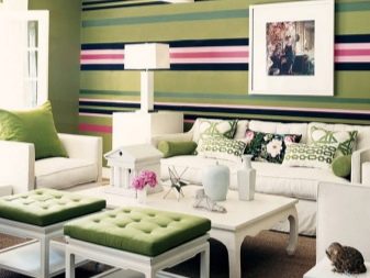 في الوقت الحاضر ، يستغل المصممون بنشاط الجدران المخططة في أنماط ومساحات مختلفة ، ويزينون الداخل بكفاءة بطبقات مخططة.