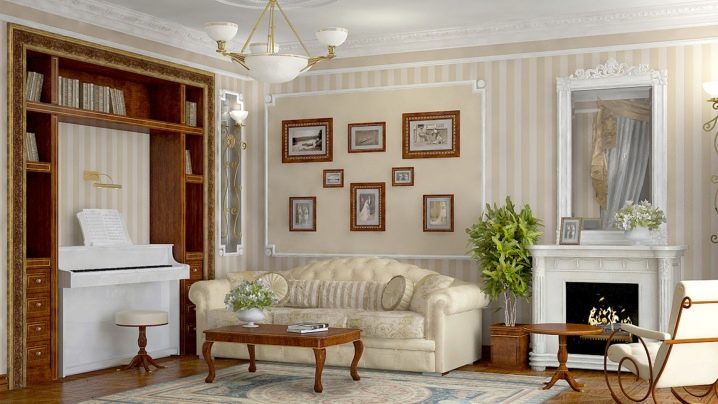 - بالنسبة للأسلوب الباروكي ، من الأفضل اختيار شريط عريض من ألوان الباستيل أو البودرة أو الزرقاء ، وتخفيف الأجزاء الداخلية بأثاث منجد باللون الأسود أو البني. يجوز أيضًا تزيين الجدران في غرفة المعيشة بروح الباروك الجديد ، مما يضفي لمسة جذابة على الألوان الجذابة والأناقة الفنية ؛