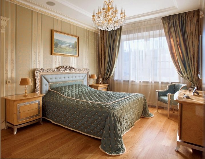 - غرفة نوم عتيقة الطراز مع خطوط بيج ستجعل الغرفة حساسة وتضيف لمسة من الرومانسية إليها ؛