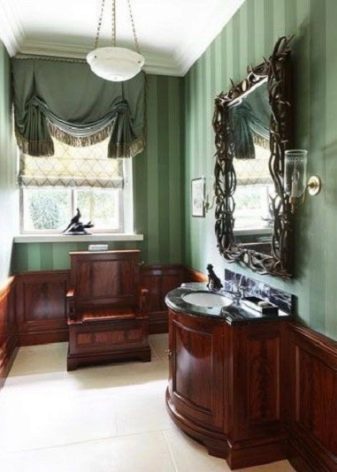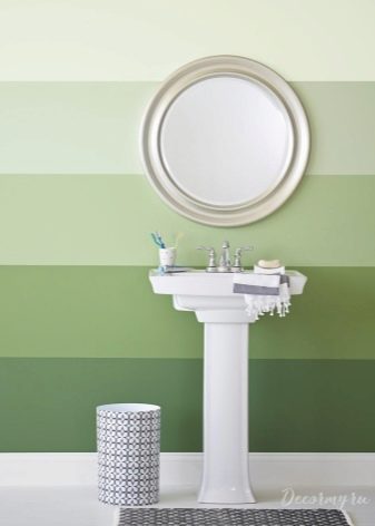 - ستعمل الخطوط الخضراء والثلجية البيضاء على تحديث الحمام ، وستشحنك أيضًا بالبهجة والإيجابية. سيؤكد النسيج المثير للبلاط على التصميم غير العادي على مستوى الأحاسيس اللمسية. أصبح من المألوف اليوم اختيار البلاط من الخشب المقلد أو الحصى البحري.