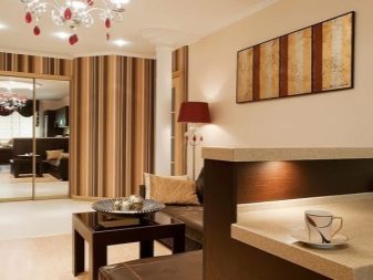 - تغيير تصور الفضاء. يمكن للخلفية ذات الخطوط العمودية أن تجعل الغرفة تبدو أطول. بالنسبة للغرفة الضيقة ، من الأفضل اختيار أغطية في شريط أفقي ، لأن الميزات الطولية يمكن ، وإن لم تكن ذات أهمية ، زيادة المساحة ، مما يجعل أي غرفة أكثر راحة. ستصبح ورق الحائط المخططة بالمتر مع الملمس لهجة مهمة في أي ديكور حديث ؛