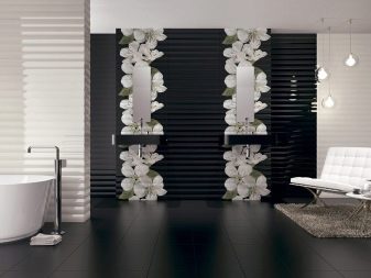 في الحمامات ، غالبًا ما يتم وضع البلاط المزخرف على شكل خطوط أفقية أو عمودية. في مساحة أكبر ، تبدو زخرفة الجدار بالكامل غير عادية.