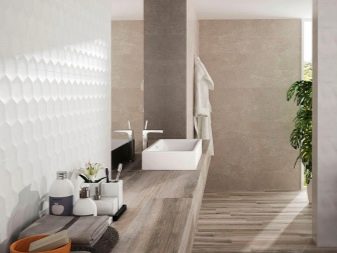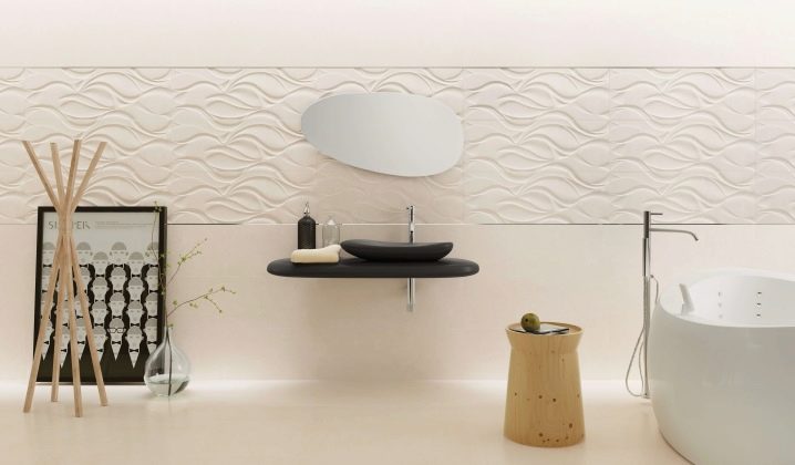 على الرغم من مساحة التطبيق الكبيرة ، كقاعدة عامة ، يتم استخدام البلاط المزخرف في تركيبة مع واحدة ناعمة أو مزيج من نمط محدب مع نمط أقل وضوحًا. يمكن استخدام الزخارف الحجمية لفصل وإبراز مناطق مختلفة في الغرفة ، دون تغيير اللون الرئيسي للداخل..