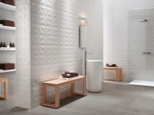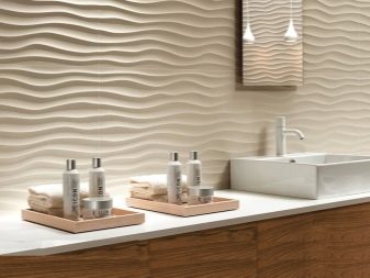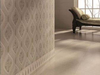على الرغم من مساحة التطبيق الكبيرة ، كقاعدة عامة ، يتم استخدام البلاط المزخرف في تركيبة مع واحدة ناعمة أو مزيج من نمط محدب مع نمط أقل وضوحًا. يمكن استخدام الزخارف الحجمية لفصل وإبراز مناطق مختلفة في الغرفة ، دون تغيير اللون الرئيسي للداخل..