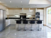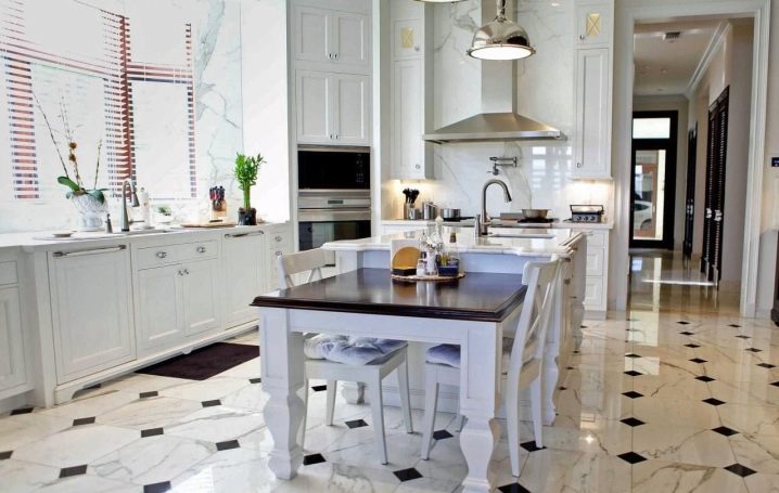 تحتاج منطقة تناول الطعام أيضًا إلى تصميم جميل وعملي. وبالنسبة لهذا الجزء من المنزل ، لا توجد مادة أفضل من البلاط المصقول..