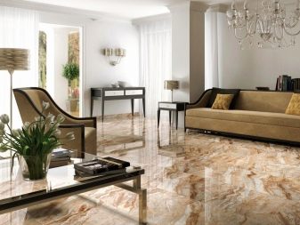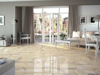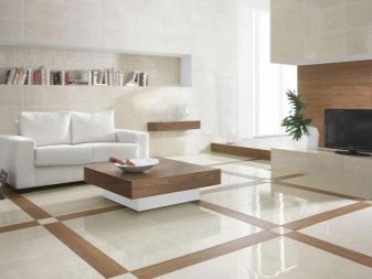 بالنسبة لغرفة المعيشة ، يجب أن تختار بلاطًا ذا قوة متزايدة ، لأن النفاذية هنا عالية جدًا. بالإضافة إلى ذلك ، عادة ما يتم وضع الأثاث الثقيل على الأرض في مثل هذه الغرف. يجب أن تكون حذرًا بشكل خاص عند تحريكه.. من السهل خدش البلاط المصقول ، ولم يعد من الممكن إزالة هذا الضرر..