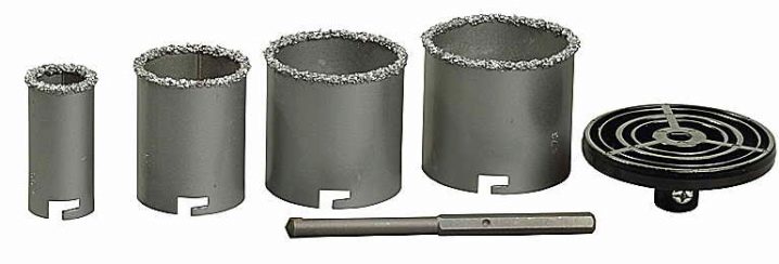 تحتوي تصميمات الكربيد على مثقاب كربيد مركزي ، بفضله يمكن استخدام مثقاب كهربائي بسيط في العمل. غالبًا ما يُباع هذا النوع من المرفقات في مجموعة.. على عكس قواطع الماس ، فإن خيارات الكربيد أرخص. يعتمد التسعير على القطر: فكلما زاد حجم التاج ، زاد سعره.