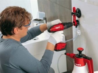 للعمل مع مثل هذا النموذج ، يمكنك استخدام مثقاب تقليدي ، ولكن في هذه الحالة ، قد تكون الثقوب غير متساوية., نظرًا لأن التاج غالبًا ما ينزلق (بسبب عدم وجود تمرين مركزي) ، والحواف الناتجة تحتاج إلى صقل. لذلك ، سيكون أفضل خيار للعمل هو آلة ثابتة ، ويفضل أن تكون مزودة بتبريد بالماء..