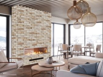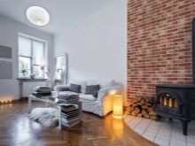 ستبدو المدفأة المزينة بالكلنكر رائعة في داخل غرفة المعيشة الكلاسيكية. وبالتالي ، لا يمكنك تصميم مصدر حقيقي للحرارة فحسب ، بل يمكنك أيضًا تصميم مصدر زخرفي ومصطنع. هذا التصميم التقليدي يبدو أنيقًا جدًا..