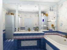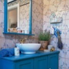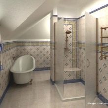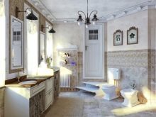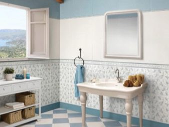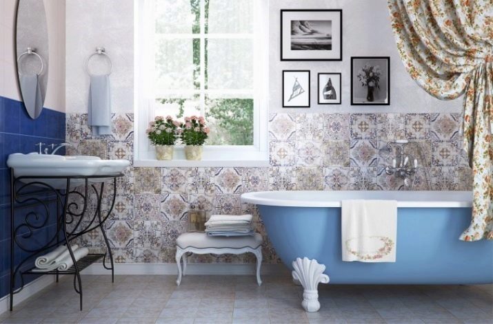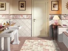 الحمام المبلط مريح وجميل وعملي. البلاط لا يخاف من الرطوبة ، والحمام أكثر من كافٍ. قواعد اختيار البلاط للحمام هي نفسها بالنسبة لأسلوب بروفانس بأكمله: تجنب الألوان الزاهية ، ويفضل استخدام الظلال البودرة ذات التأثير القديم.