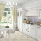 استخدام بلاط السيراميك في المطبخ أمر لا بد منه. هذا النوع من الكسوة سهل التنظيف ، ولا يتشوه تحت تأثير درجة الحرارة ، فهو مقاوم للمواد الكيميائية والعضوية. غالبًا ما يتم تجسيد نمط القرية الفرنسية في مساحة المطبخ ، باستخدام مواد التشطيب لصنع ساحة مطبخ أو كسوة أرضية. لوضع المريلة لتتناسب مع وحدة المطبخ ، استخدم بلاطًا صغيرًا.