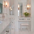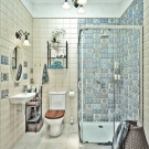 إذا كنت ترغب في إضافة لون إلى حمامك ، فاختر درجات اللون الأخضر والأزرق ، وتجنب الألوان الفاتنة والنيون. يمكنك تزيين الأسطح ببلاط من الزيتون والخردل والمستنقعات والسماء وزهرة الذرة الزرقاء. الظل الخزامى ، نغمة الوردي البودرة مثالية لإنهاء الحمام. تتناسب تركيبات البلاط مع مزيج من الخلفية العادية والبلاط المزخرف بشكل جيد مع هذه الغرفة.