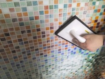 بالنسبة للفسيفساء غير الشفافة ، اللون ليس مهمًا. هذا النوع من البلاط مناسب تمامًا لملاط الأسمنت الأبيض ، يمكنك استخدام التشتت أو الإيبوكسي التفاعلي أو البولي يوريثين.