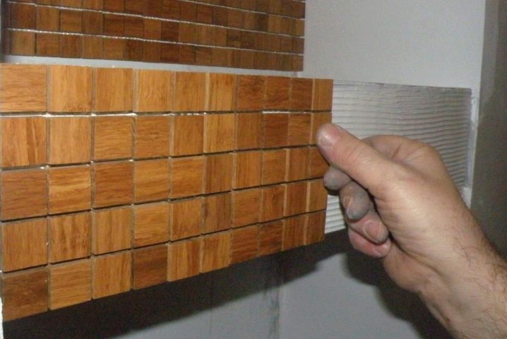 بالنسبة للبلاط الكبير على شبكة خاصة وفسيفساء زجاجية ورخام ، يجب عليك اختيار مادة لاصقة مقاومة للماء.