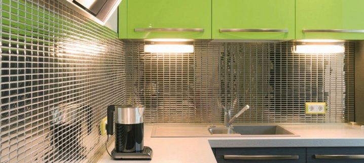 تتمتع المواد العاكسة الرائعة بالعديد من المزايا مقارنة بخيارات البلاط القياسية. بادئ ذي بدء ، فهي تتميز بالقيمة الجمالية.. بمساعدة مثل هذه الطلاءات ، يمكنك تحويل الغرفة ، مما يمنحها أسلوبًا خاصًا وتألقًا..