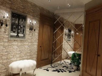 - عن الرواق الخيار الأنسب هو البلاط العاكس. سوف توسع المساحة بصريًا. يمكنها تقليم أحد الجدران من الأسفل إلى السقف ، أو ترتيب المساحة حول المرآة. لا تختر أبدًا سقفًا نهائيًا في مساحة ضيقة لتركيب بلاط المرآة ، وإلا ستبدو كحافظة مقلمة طويلة وغير مريحة..