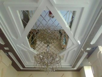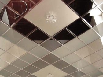 مزيج من البلاط البلاستيكي المرآة مع إدخالات غير لامعة من نفس المادة سيبدو عضويًا في تصميم السقف. سيؤدي حل التصميم هذا إلى إحياء التصميم الداخلي ولن يكلف الكثير ، نظرًا لأن بلاط PVC له سعر ديمقراطي..