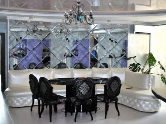 - مواد التشطيب هذه متعددة المهام. يمكن استخدام بلاط المرآة ليس فقط لتزيين الجدران ، ولكن أيضًا للأسقف والأرضيات وحتى بعض قطع الأثاث أو الديكور..