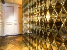 - في فرقة حداثية يمكن استخدام بلاط المرآة لتزيين الأعمدة الفاخرة (إن وجدت) ونهايات السلالم والتفاصيل الداخلية الأخرى. يمكن أن تخلق هذه العناصر صورة أفتح وأكثر تهوية للغرفة..