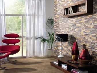 لتزيين الجدران في غرفة المعيشة ، من المهم توفير إضاءة جيدة., نظرًا لأن الزخرفة “الحجرية” ستبدو مذهلة فقط مع الإضاءة الساطعة من أعلى ومن الجانب ، بالإضافة إلى أن استخدام المواد يعتمد على حجم وشكل الغرفة. ستؤدي الألوان الداكنة للبلاط إلى تضييق المساحة ، بينما تعمل الألوان الفاتحة ، على العكس من ذلك ، على تكبير الغرفة بصريًا. لذلك ، عند تزيين المناطق الداخلية في غرف المعيشة ، من الضروري اختيار العناصر الزخرفية ذات الظلال الدافئة ، مع إعطاء الأفضلية للأحمر والبني والبيج. إذا كان التصميم يتطلب “البرودة” ، فيمكنك تثبيت شظايا منفصلة من بلاط الجبس بظل رمادي أو أزرق فاتح في الغرفة. سيبدو الديكور رائعًا في غرفة النوم إذا تم باللون الأبيض.