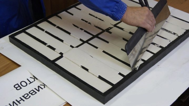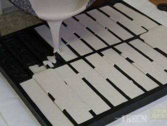 قبل الصب ، يتم تنظيف المصفوفات جيدًا وتشحيمها بمخاليط تحتوي على دهون.. لتحضير المحلول ، خذ 6 أجزاء من الجبس وجزء واحد من الجير واللون والماء النقي (بنسبة 1: 0.7). نظرًا لأن الجبس له خاصية التصلب الفوري ، يجب تحضير المحلول بسرعة ، مع تحريك جميع المكونات بخلاط البناء. يُسكب الخليط في قوالب ويُسوى بملعقة. وتجدر الإشارة إلى أن الخليط يتم تحضيره فقط للعدد المطلوب من الأشكال ، ولا يمكن تحضيره بمخزون ، لأنه سيصبح صعبًا وغير مناسب للاستخدام مرة أخرى..