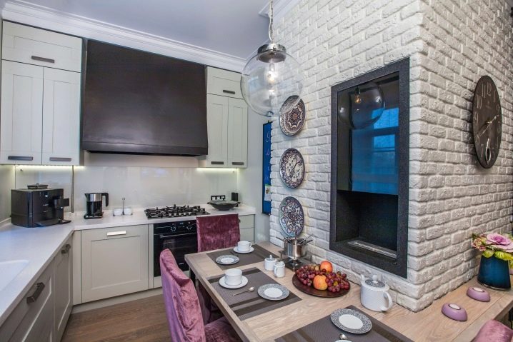 هناك العديد من خيارات التكسية في المطبخ., ولكن الأكثر أصالة هو وضع الزخرفة الزخرفية على الحائط بالقرب من سطح العمل. يمكنك أيضًا استخدام المواد لتزيين عداد القضبان أو غطاء المحرك أو جدار العمل بالقرب من الحوض ، ولكن في هذه الحالة ، يجب تلميع البلاط بشكل إضافي لحماية سطحه من الرطوبة. تجدر الإشارة إلى أن المطبخ ذو الكسوة الحجرية البيضاء يبدو أنيقًا ومتطورًا..