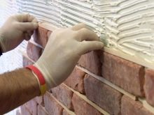 - يتم وضع طبقة رقيقة من المادة اللاصقة على الجدار المعد مسبقًا. يتم توزيعه على القاعدة بحيث يمكن وضع 4-5 لوحات. يمكن وضع الكسوة الزخرفية على كل من الحوائط الجافة والمعجون.