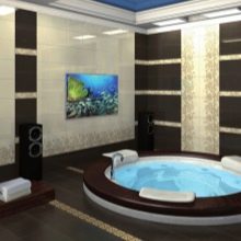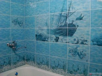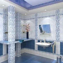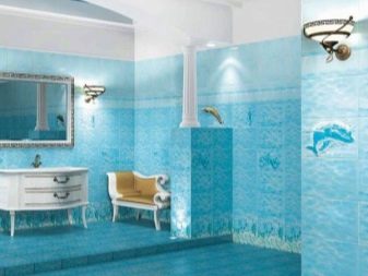 هذه المجموعة ناجحة لأنها غالبًا ما تستخدم لمفروشات الحمام. تم صنع البلاط بظلال دقيقة من اللون الأزرق الفاتح والفيروزي. يجذب الانتباه بسبب عدم تجانسه ، حيث أن الخلفية الرئيسية مزينة بعروق ذات ظل أفتح.. يمثل السيراميك سطح الماء تمامًا.