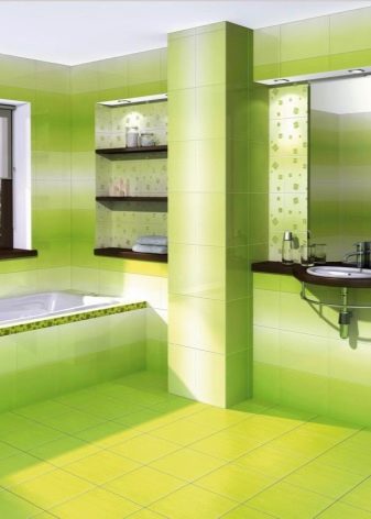 هذه المجموعة مطلوبة بشدة لأنها تستخدم لتجسيد نهج غير قياسي للتصميم الداخلي للاستحمام أو الحمام. يتكون البلاط من درجات اللون الأخضر الفاتح والبرتقالي ، والتي تختلف من مشرق إلى فاتح.