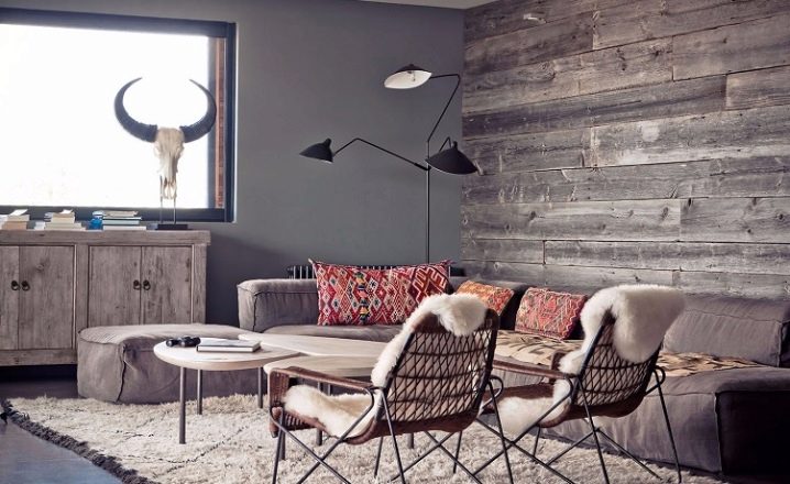 لا يمكن لغرفة المعيشة الأصلية والعصرية الاستغناء عن الدوافع الخشبية. يمكن أن يكون الحل الجريء هو السقف الذي تم لصقه تحت الألواح الخشبية الداكنة. يمكن أن تكون الجدران أيضًا من أي ظلال خشبية طبيعية. تبرز الأنماط الخشبية ذات الطلاء المريح منافذ أو حواف جيدًا ، بينما يجب أن تكون المساحة المتبقية محايدة وأحادية اللون.