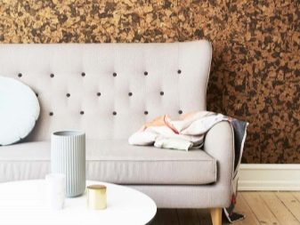 بشكل منفصل ، يجب ذكر مزايا وعيوب ورق الحائط الطبيعي. يمكن اختيار الفلين للأشخاص الذين يعانون من سوء الحالة الصحية. لا تلتقط الغبار ولا تسبب الحساسية. تحتفظ هذه المواد بالحرارة جيدًا ، وهي عازلة للصوت ، وبلاستيكية ، وبالاقتران مع التشريب الخاص ، فإنها تطرد الرطوبة. بسبب الطبقة السميكة ، هم يمكنك إخفاء عيوب سطح الجدار.